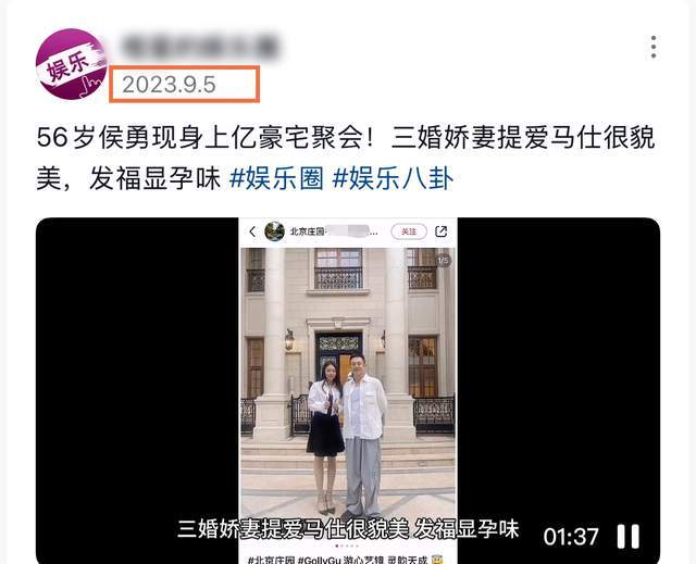 前年,有网友曝出侯勇携三婚娇妻现身豪宅,画面中的她看起来孕味十足,结合现在的时间线来分析,应该就是那个时候怀孕的。