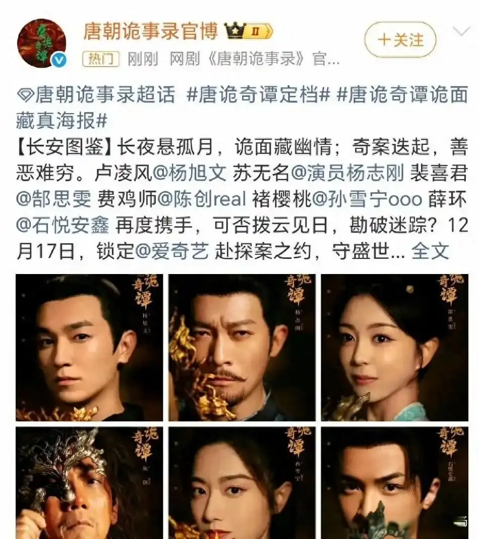 12 月 17 日,锁定爱奇艺,跟随苏无名、卢凌风的脚步,走进充满诡谲色彩的唐代世界,在层层悬念中破解奇案,感受古装探案剧的独特魅力!