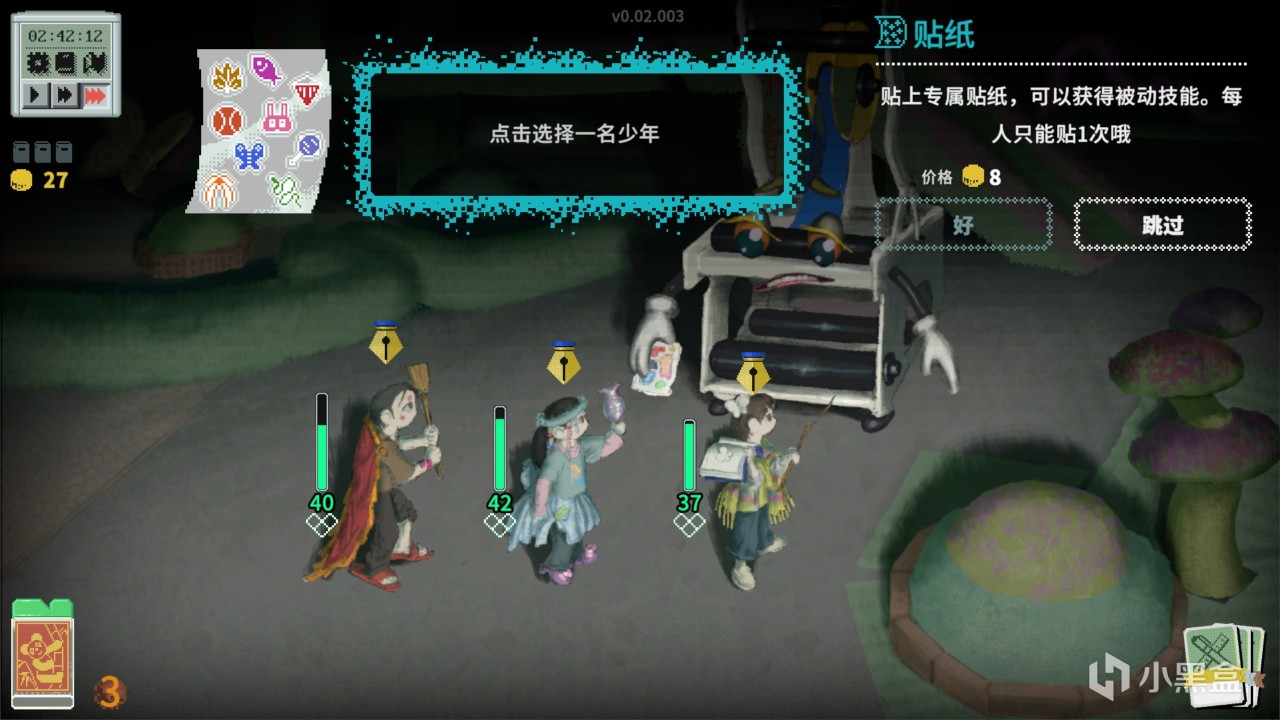 在贴纸(角色被动技能)、附膜(升级卡牌)、删减(删卡)、漫画店(角色战斗中复活)等事件点,物品被拟人化处理,可以看到上图的贴纸机器有着双臂、眼睛一样的灯泡。