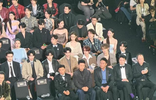王宝强在此次活动中坐在第一排,并在合照中稳占C位。