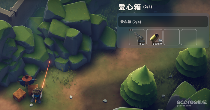 例如在第一张图中,玩家离开基地后就会发现一个箱子,箱子里面有一把小手枪,似乎在鼓励你:“哪怕什么东西都没带,没事,我们已经早早为你准备了!”这种从设计角度出发的温柔,是独属于单机的。