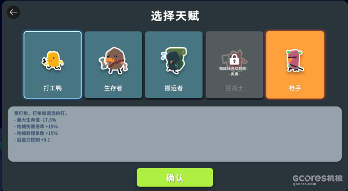此外鸭科夫还有着RPG系统,即天赋树,职业选择(需要解锁)与饰品,这种RPG系统,既可以在短期内把收集到的资源转化为实力,让我们感受到,哇~我又成长了一步了!还可以帮助我们找到下一步的方向,接下来该怎么做,嗯,该升级天赋树了。