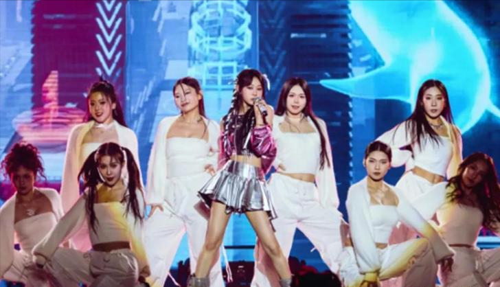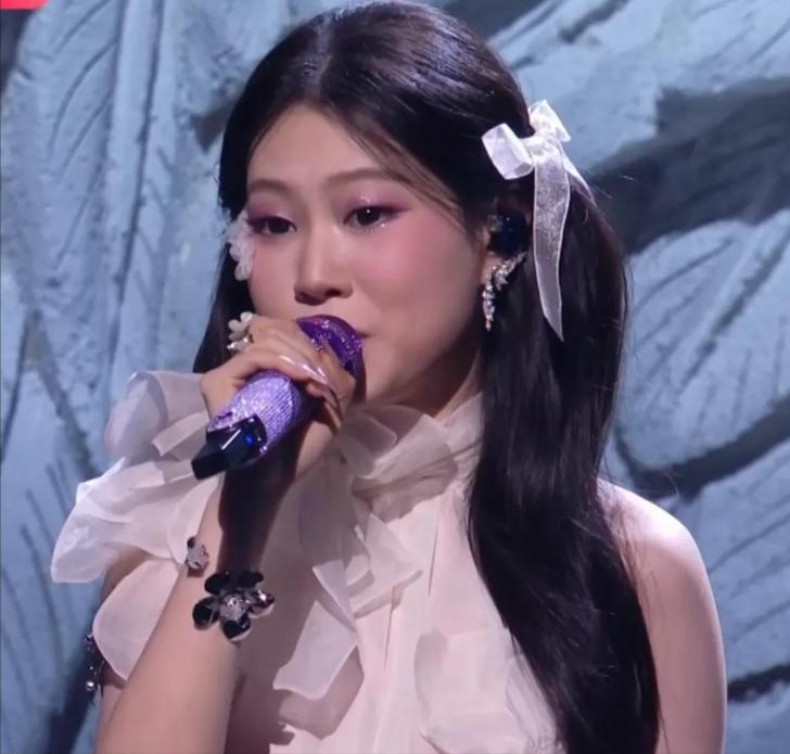 舞台上沈佳润的妆造很韩系,一身白色长裙和两个低马尾尽显清纯气质,妥妥的少女既视感,