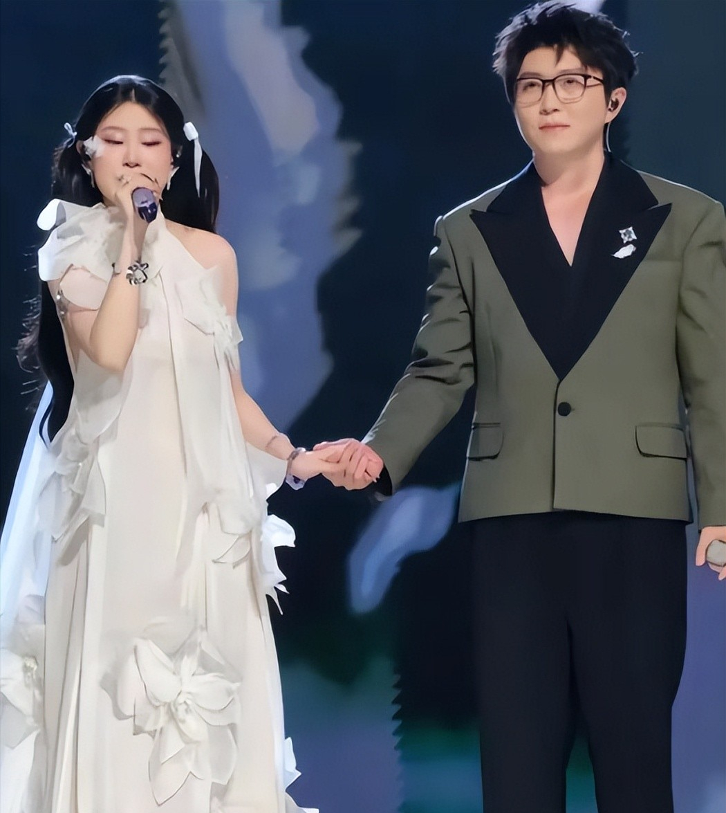 旁边的毛不易也是一身西装打扮,沉稳哥哥和青春妹妹的组合一时间也吸引了不少人的注意,然而两人在舞台上表演的时候沈佳润却翻车了。