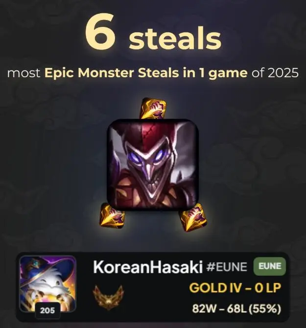 转眼间,我们已经挥别2025年,迎来全新的2026年。在过去的一年中,《英雄联盟》同样陪伴全球玩家度过了令人难忘的时光。1月4日,数据统计网站DPM.LOL开始公布2025年《英雄联盟》全球排位赛中的一系列有趣数据:有玩家一局偷了6次野怪,有人单场打出超过70万的超高伤害,甚至还有人一局游戏死亡60次却最终获胜。