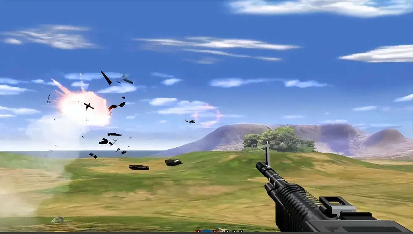 游戏的玩法简单直接,本质就是早期的塔防类游戏,玩家站在固定的防御点,操控机枪、大炮,对付从海、陆、空四面八方涌来的敌人。看似操作不难,但敌人是 360 度无死角出现的,而且越到后期攻势越凶猛,坦克、飞机、登陆艇轮番上阵,稍微分心就让敌人突破防线,游戏直接结束。