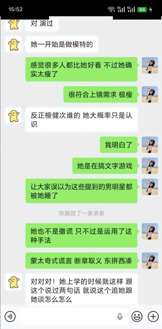 檀健次的 “短袖梗” 聊天记录,只有她单方面说 “你短袖还在我这”,却没有对方的实质性回应,更缺关键互动证据;