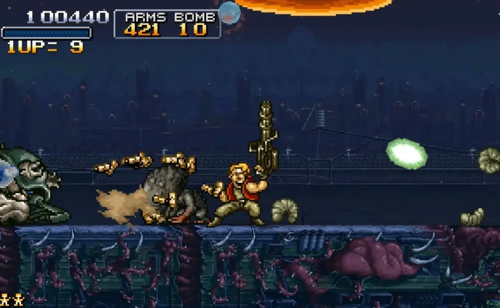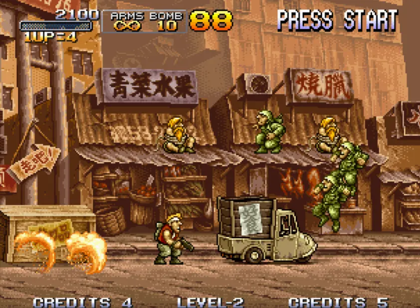 当年在游戏厅里,《合金弹头》永远人满为患,大家都是排队等着玩,投币声、枪声、队友的呼喊声交织在一起,热闹得像过年一样,但多数人也只不过能玩到第三、第四关罢了,不是一次能买几块钱游戏币的土豪玩家,根本就没上手玩过最后几关。