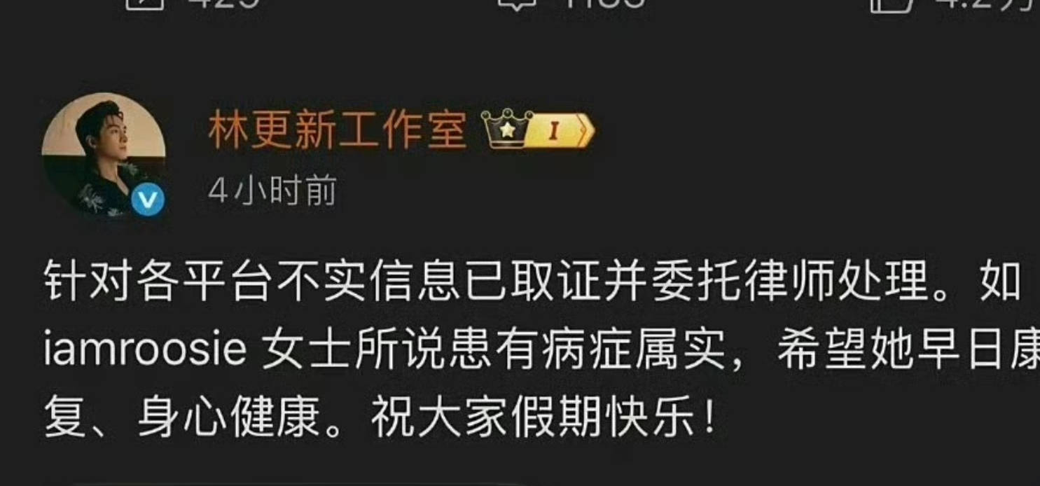 更绝的是工作室的高情商回应,堪称"温柔刀"式反杀。面对司晓迪的无锤爆料,工作室没有气急败坏地喊打喊杀,反而甩出一句"如司晓迪女士病症属实,祝早日康复",四两拨千斤的态度直接让舆论笑出声。而林更新本人更是佛系,全程没下场回应半句,该分享剧组日常分享日常,该晒美食晒美食,仿佛这场风波与自己无关。这种"兵来将挡水来土掩"的淡定,反而让网友觉得"这很林更新",比起那些急于洗白的艺人,他的"不装"反而更圈好感。