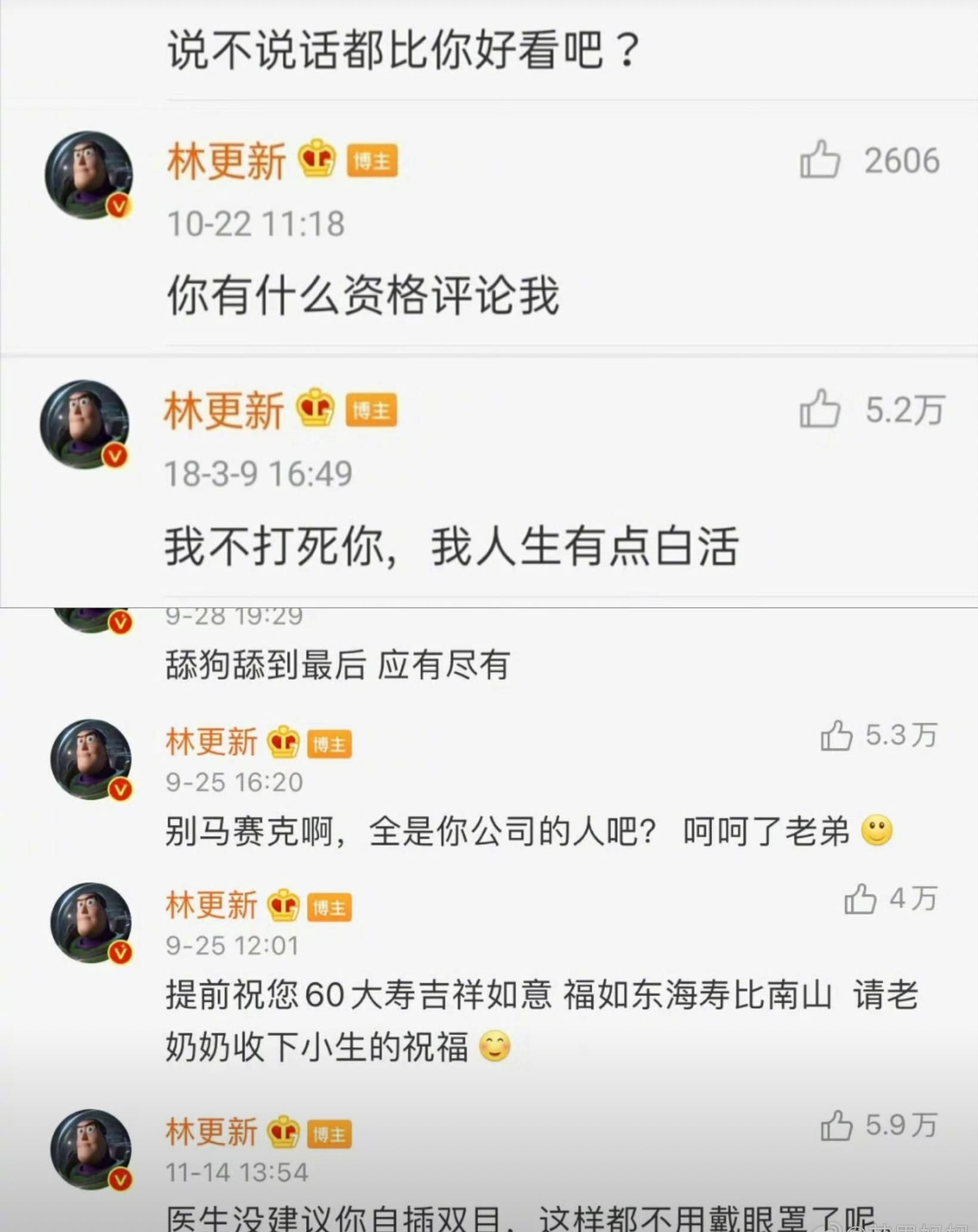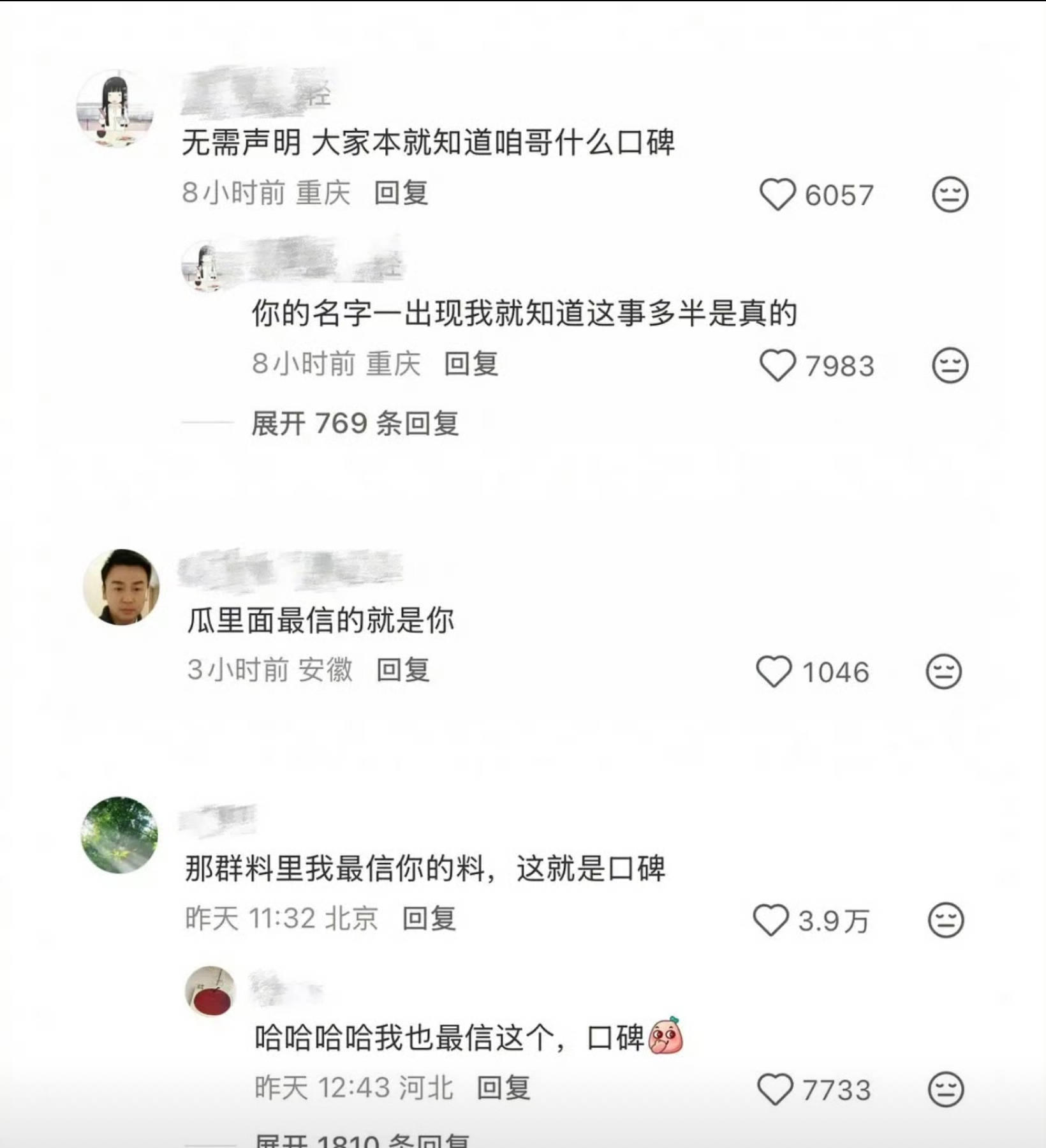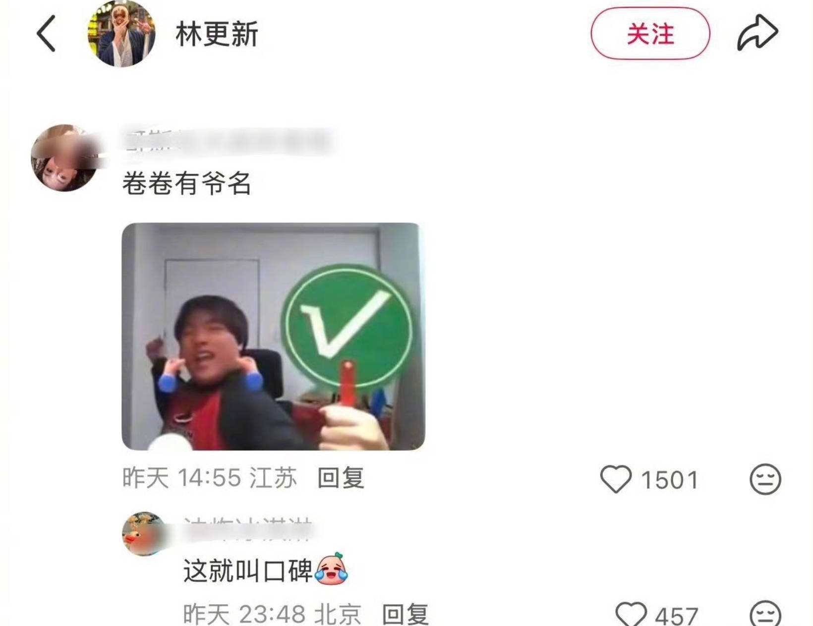 于是乎,林更新的评论区成了这场爆料风波里的一股清流,别人的评论区要么是粉丝控评,要么是路人质疑,只有他的评论区一片玩梗狂欢。"卷卷有爷名"刷满屏,"无需声明"被反复玩梗,甚至还有网友调侃"建议林更新出一本《八卦生存指南》"。这场看似危机的事件,非但没影响他的口碑,反而意外强化了他"真实接地气"的形象——毕竟在内娱,敢这么放飞自我、不立人设的艺人,真的不多了。