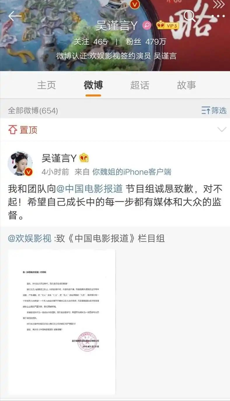 面对铺天盖地的批评声音,吴谨言团队不得不出来道歉。