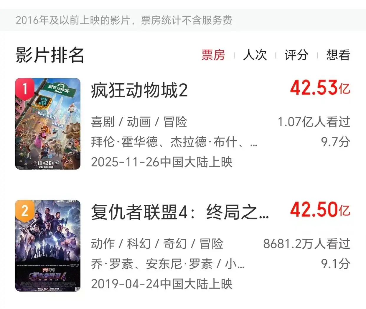 《疯狂动物城2》距离《哪吒2》只差40亿人民币了。