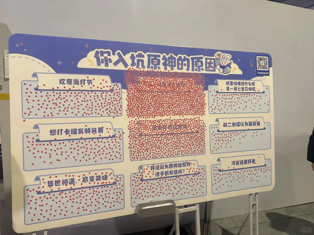 入坑《原神》原因的留念板上,“不懂,醒来就在沙滩上了”和“原来你也玩原神”高居前列,大家都乐于玩一些吐槽自己的热梗。