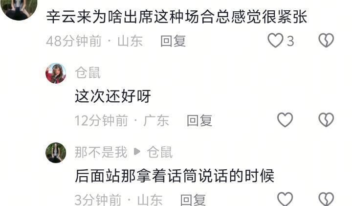 说起来,这还是她在星光大赏后露面的第一次大型活动,没出一点岔子,同场的男演员辛云来反而比她还紧张,念台词时还有些声线发抖。