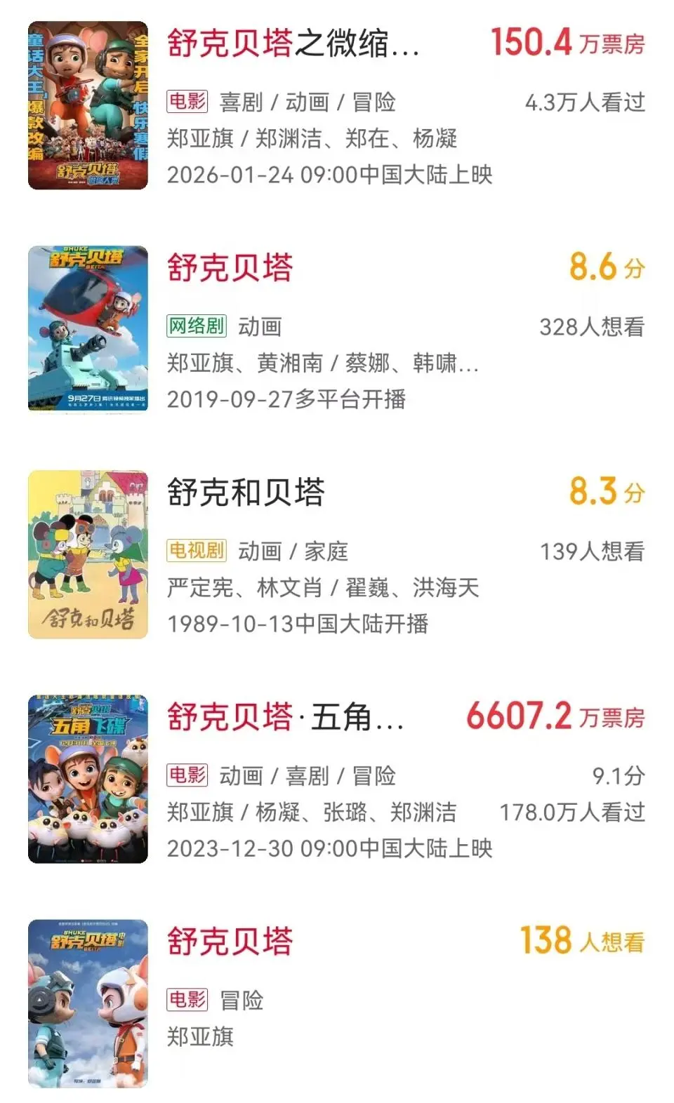 目前,根据这个IP改编的第二部大电影《舒克贝塔之微缩人类》,正在院线公映中,可此片并未复制第一部的成功,从票房来看,投资方郑渊洁父子要亏到怀疑人生了。