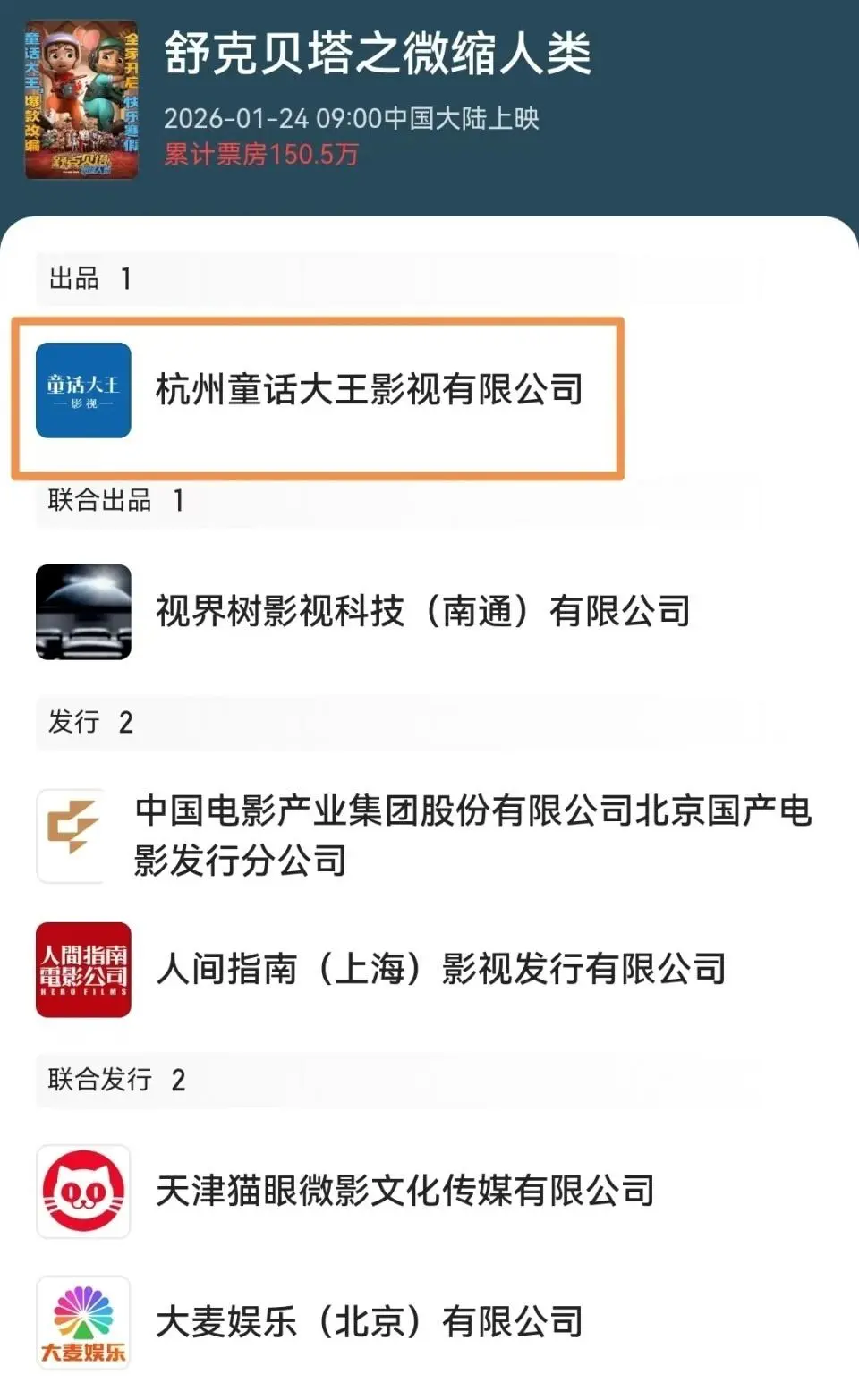 为此,郑亚旗于2017年成立了杭州童话大王影视有限公司,其注册资本为382万,这也是《舒克贝塔之微缩人类》主要投资制作方,相当于《熊出没》中的深圳华强一样。