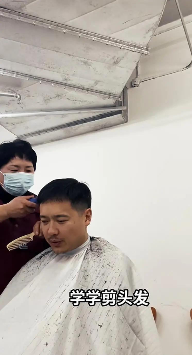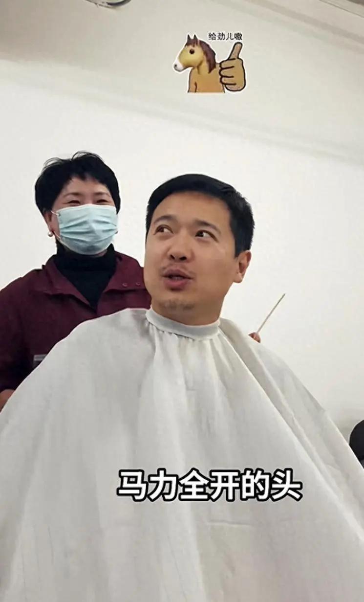 他坐在白色围布下,胡茬里已经透出斑白,对着镜头自嘲:“马力全开的头,加一块 20,回家买年货。”