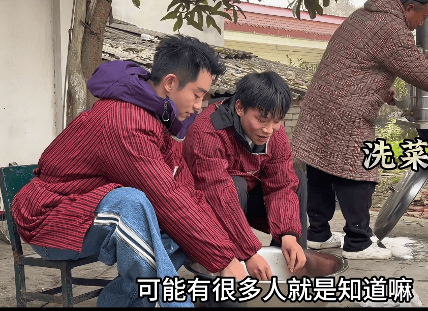挖完折耳根,他紧接着就投入到了洗菜的工作中。坐在小板凳上,与当地居民一起洗菜的场景,让他显得非常融入,仿佛就是其中的一员。洗菜的间隙,他几乎没有停歇,又马不停蹄地去忙着烧柴火。整个过程,他展现出了极强的动手能力和朴实的一面,非常接地气。