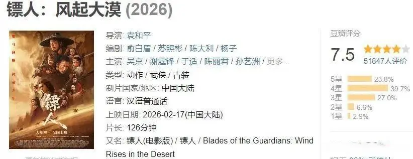 这电影真卖了11亿,不是吹的,猫眼灯塔都实打实挂着,到2月21号晚上零点刚过就定了。春节档别家都在往下掉,它反倒往上蹿,第四天就冲到4亿,后面稳得不行。有人算过,平均每天进账六千多万,比《惊蛰无声》高出快三成,虽然没追上《飞驰人生3》,但人家是喜剧合家欢,它是硬邦邦的沙漠刀光。