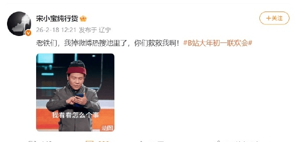 宋小宝本人则发文自嘲:"老铁们,我掉微博热搜池里了,你们救救我啊!"他呼应热搜话题,很有自嘲精神。