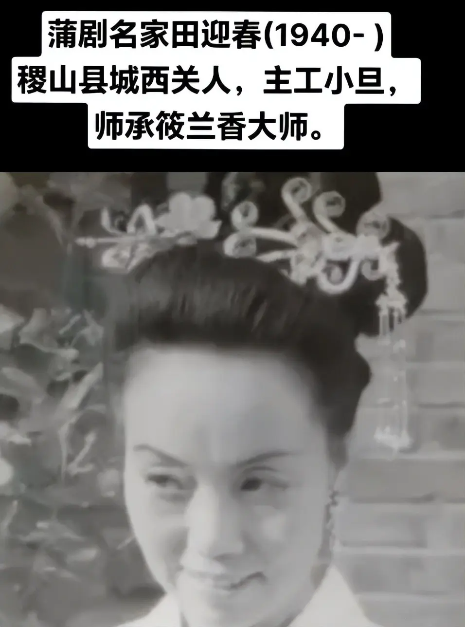 田迎春是山西稷山人,主工小旦行当,师承蒲剧名家筱兰香,1954年加入蒲剧团,从此一辈子都在戏里。