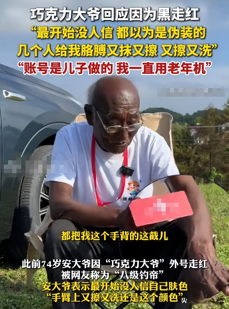 去年,他因为一身被阳光晒成深色的皮肤意外走红,有人好奇上手又擦又洗,才发现那不是颜料,是几十年河边风晒留下的颜色。