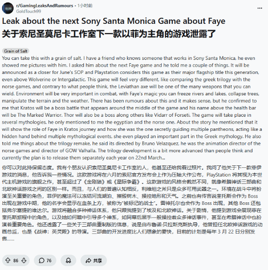 据Reddit网友GoldTouch99分享,他说他有个朋友认识一个在圣莫妮卡工作的人,GoldTouch99向其询问了关于“菲”版《战神》的事情,并总结了一些情报。