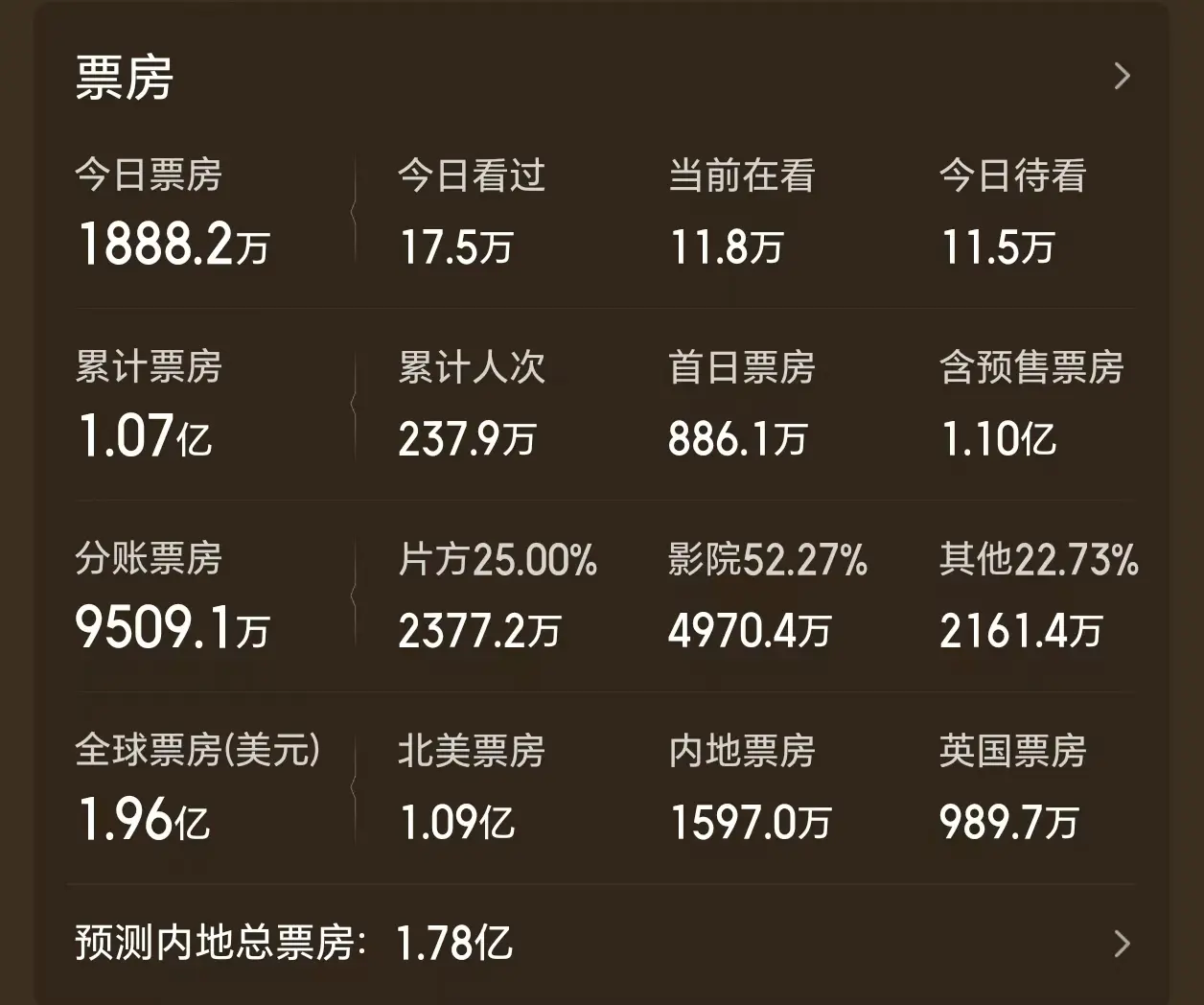 另外,《挽救计划》的北美以及海外其他市场的表现也很不错,算上内地的成绩,该片目前的全球累计票房已经接近2亿美元,感觉用不了多久,就会突破2.2亿美元,最后更是能够达到3亿美元。