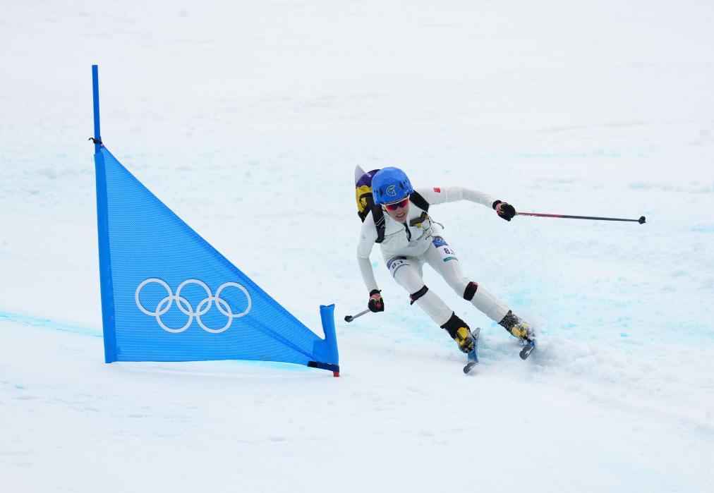 中国队选手次旦玉珍在米兰冬奥会滑雪登山混合接力比赛中。新华社记者 胡虎虎 摄