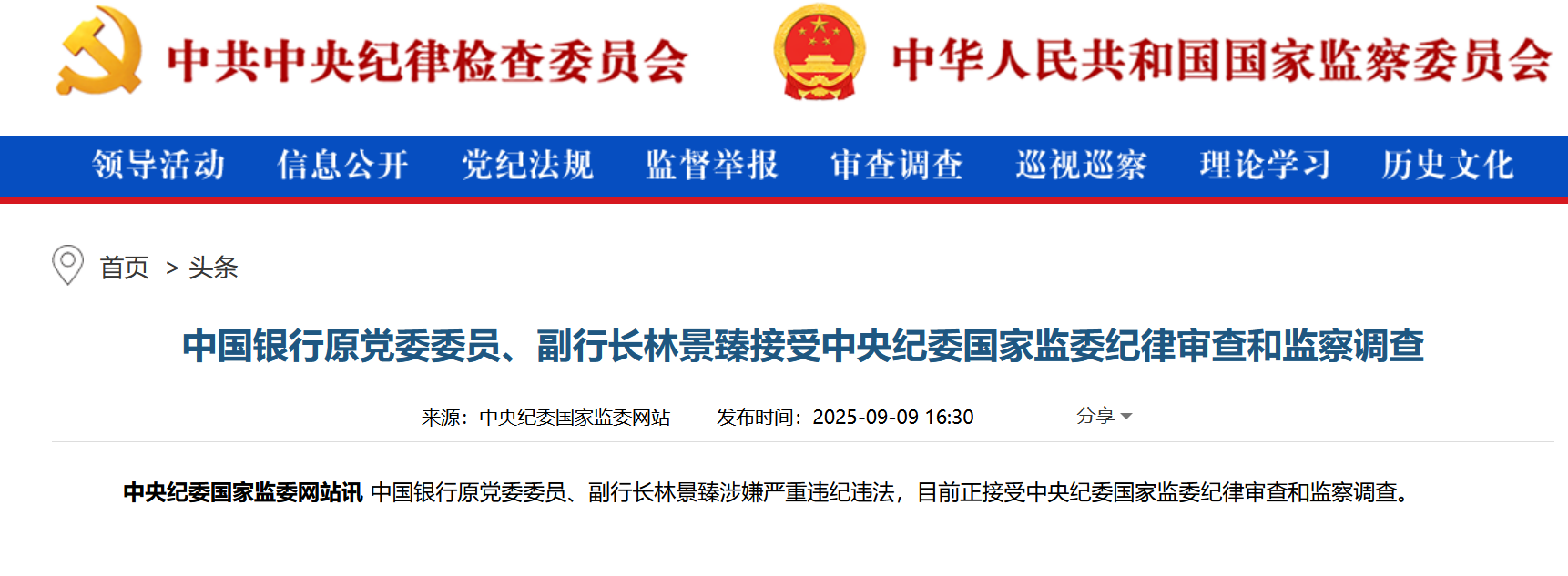 站内搜索:中国银行原副行长林景臻被查