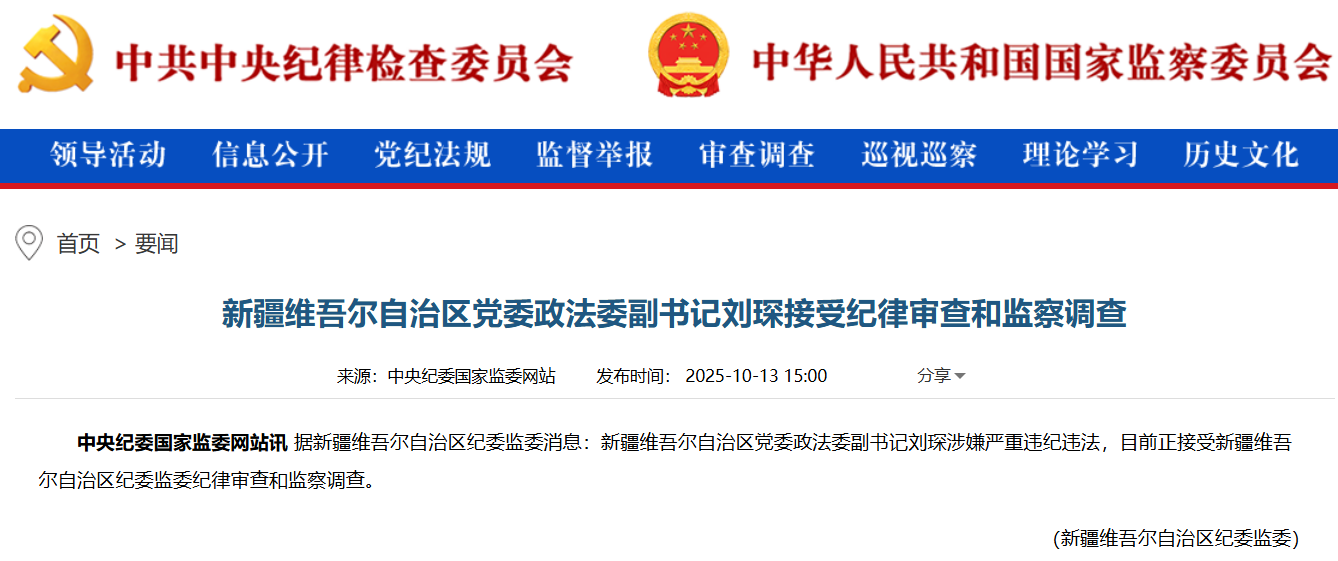 站内搜索:刘琛被查,3月卸任和田地委书记