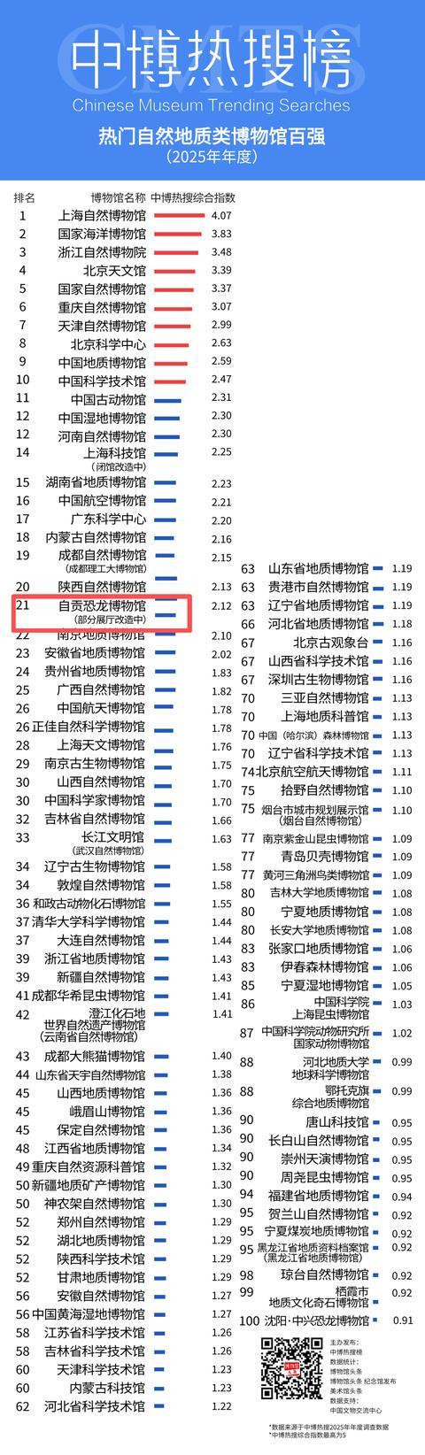 双榜认证!自贡恐龙博物馆跻身“2025年度自然地质类博物馆百强榜”