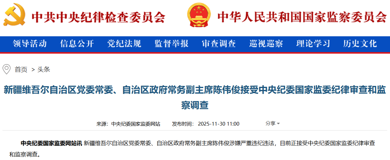 周末“打虎”!新疆维吾尔自治区政府常务副主席陈伟俊被查