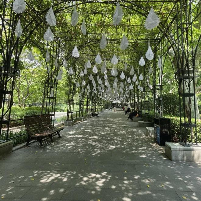 复兴公园“雨滴长廊”有后续:公园落叶已铺在上海交大这栋楼