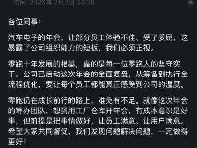 零跑汽车年会引员工吐槽 董事长朱江明回应复盘 奖品晚餐曝光显诚意