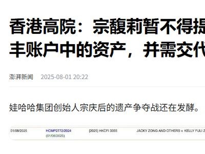 站内搜索:娃哈哈遗产争夺战升级:宗馥莉能否逆转18亿美元信托危机?
