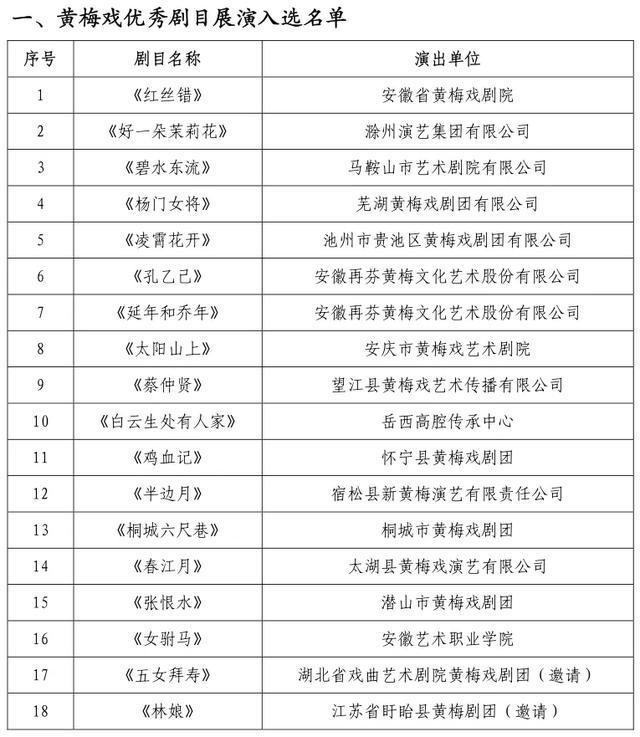 安庆“十一”黄梅戏展演周参演剧目入选名单出炉