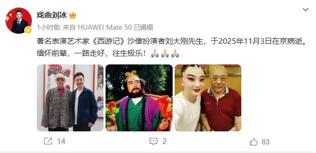 著名男演员、《西游记》沙僧扮演者刘大刚病逝