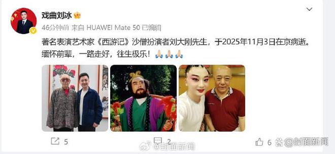 西游记续集沙僧扮演者刘大刚病逝,86版和00版沙僧扮演者都离开了