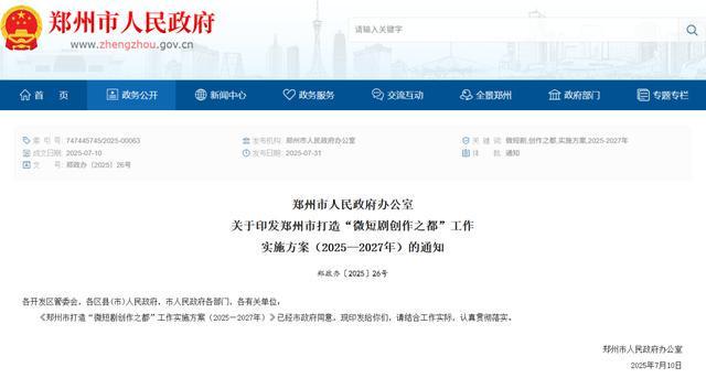 站内搜索:目标规模100亿元!郑州打造“微短剧创作之都”
