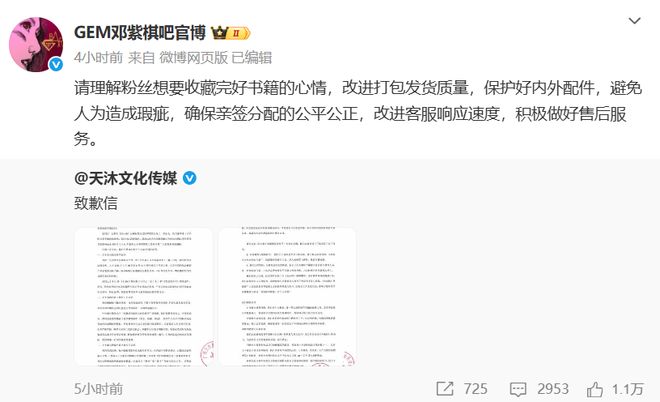 站内搜索:邓紫棋小说《启示路》经销商发布致歉信,此前小说简体恒藏版被指调包