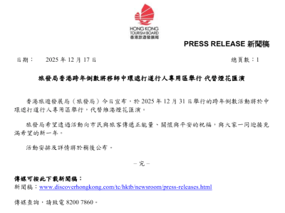 香港跨年活动调整:取消烟花秀 12月31日将举行倒数活动迎新年