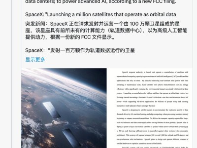 站内搜索:马斯克旗下SpaceX拟建百万卫星“轨道数据中心”,称将先小规模起步再扩大