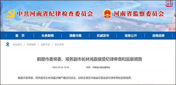 站内搜索:鹤壁市常务副市长林鸿嘉官宣落马,一个月前被罢免