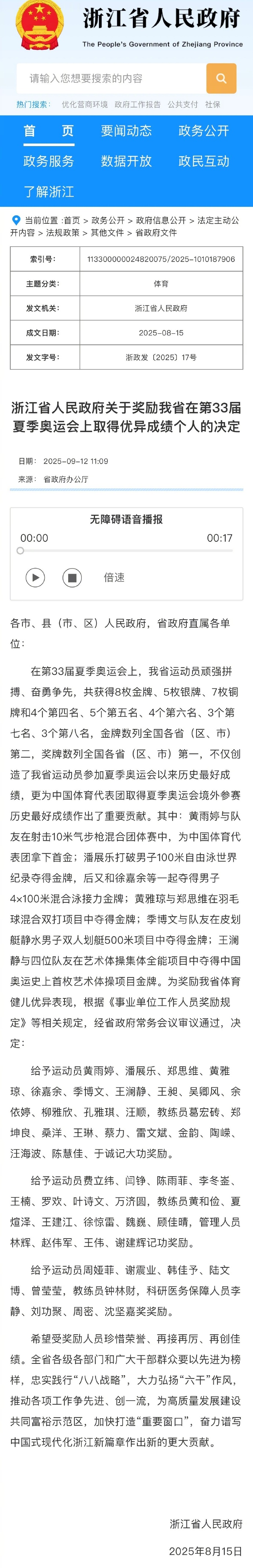 黄雨婷潘展乐等人被记大功