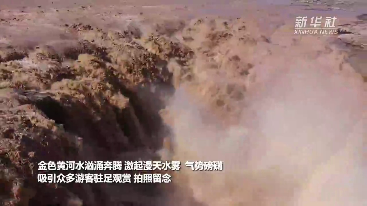 壮美!黄河壶口瀑布“金涛拍岸”引游人