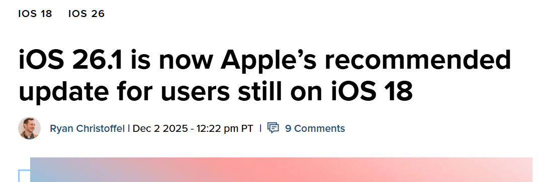iOS 26.1取代旧版成首推更新,用户升级需手动确认
