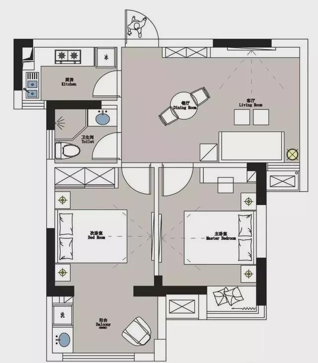 68平小户型二居室现代轻奢风,L形的橱柜布局简单高级!
