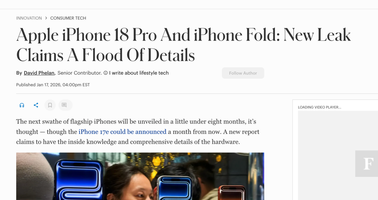 iPhone 18 Pro与折叠屏新机爆料:屏幕、芯片、摄像头细节全曝光