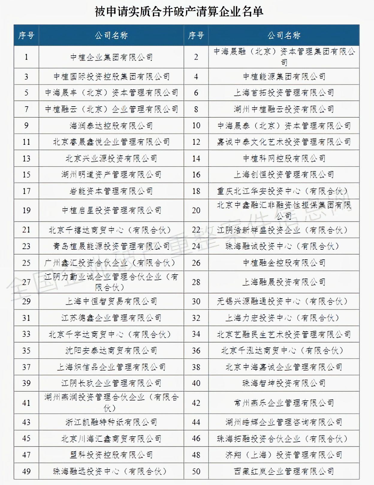 6月28日,北京市第一中级人民法院公告称,中植企业集团有限公司(以下简称中植集团)管理人提交申请称,中植系企业存在复杂的关联关系,财产分布广泛,负债金额巨大。